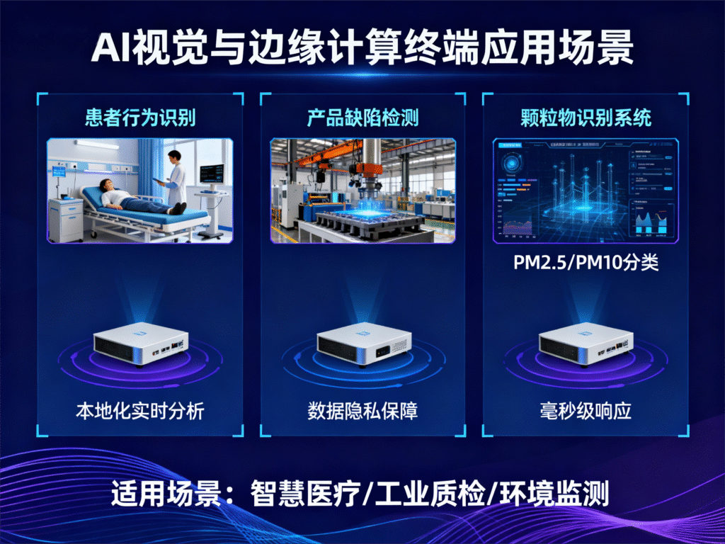 智能病床监测、工业质检、颗粒物识别系统:通过AI视觉算法与边缘计算硬件结合,实现本地化实时分析(如患者行为识别、颗粒物分类),保障数据隐私与毫秒级响应,适用于智慧医疗、工业质检、环境监测等高实时性需求场景。
