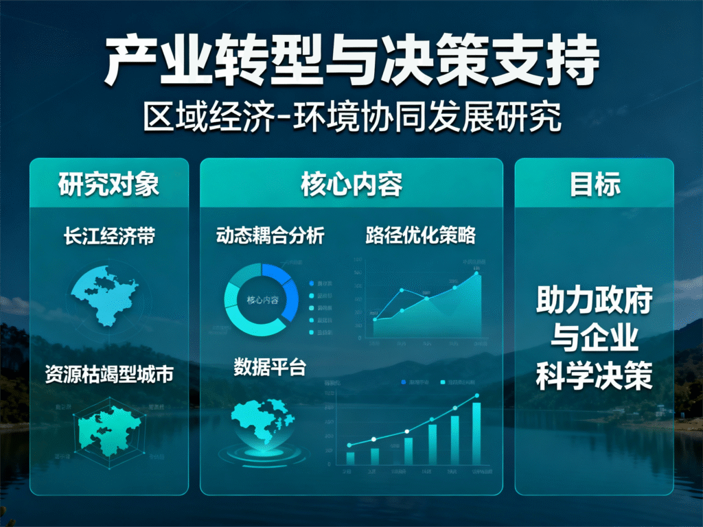 区域经济-环境协同发展研究:面向长江经济带、资源枯竭型城市等,提供产业转型与资源环境承载力的动态耦合分析、路径优化策略及数据平台,助力政府与企业科学决策。