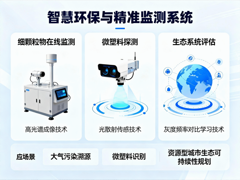 细颗粒物在线监测、微塑料探测、生态系统评估:利用高光谱成像、光散射传感、灰度频率对比学习等技术,开发高精度环境检测设备与评估模型,支持大气污染溯源、微塑料识别、资源型城市生态可持续性规划。
